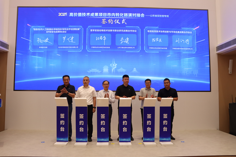 为深化科技创新与产业创新融合,推动高价值技术成果在济南市转化落地,2025年6月11日,由山东省创新发展研究院、济南市科学技术局主办的2025高价值技术成果项目市内转化路演对接会(山东省实验室专场)在山东科技大市场2层路演大厅举行。济南微生态生物医学省实验室作为承办单位之一,携多项创新成果参与路演展示,助力构建“实验室+企业+产业链”协同发展的新机制。